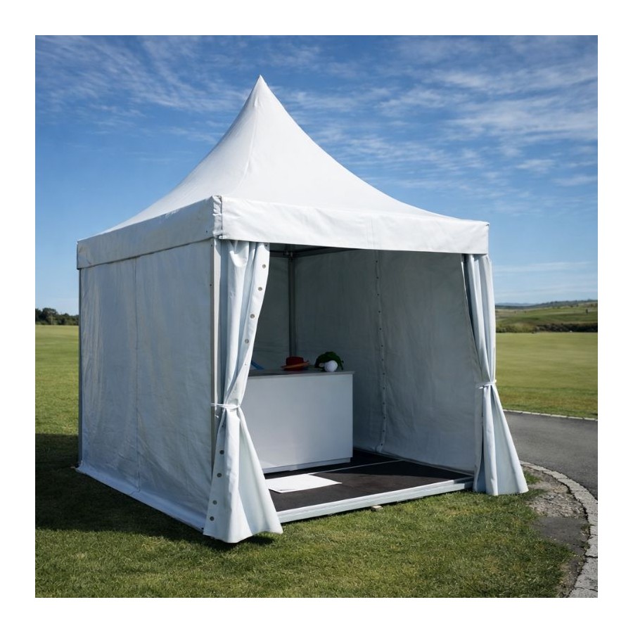 Tentes de 3x3 juxtaposables les unes aux autres. Plus élégantes que les stands elles s'adaptent aux petits espaces avec un look chaleureux.